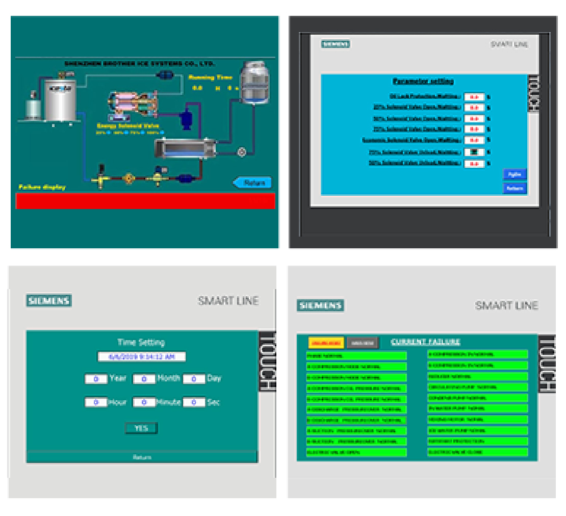 The ICESTA series of flake ice machines are the first dynamic process intelligent control system (touch screen) in the industry in our country, which can remotely control the system touch screen, so that the running status of the ice machine can be displayed through touch, and it can quickly search for problem solutions to make the ice machine human Make a more perfect breakthrough.