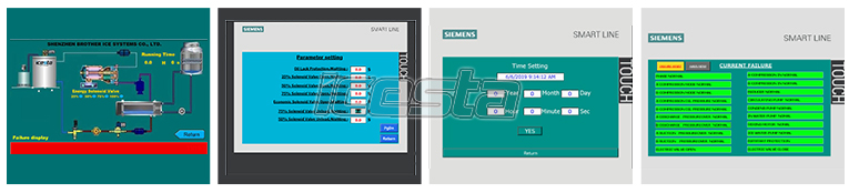 The ICESTA series of flake ice machines are the first dynamic process intelligent control system (touch screen) in the industry in our country, which can remotely control the system touch screen, so that the running status of the ice machine can be displayed through touch, and it can quickly search for problem solutions to make the ice machine human Make a more perfect breakthrough.