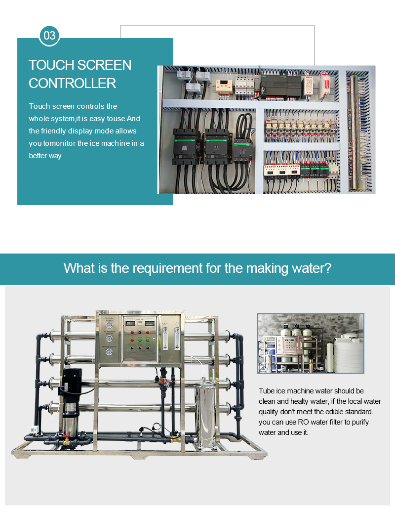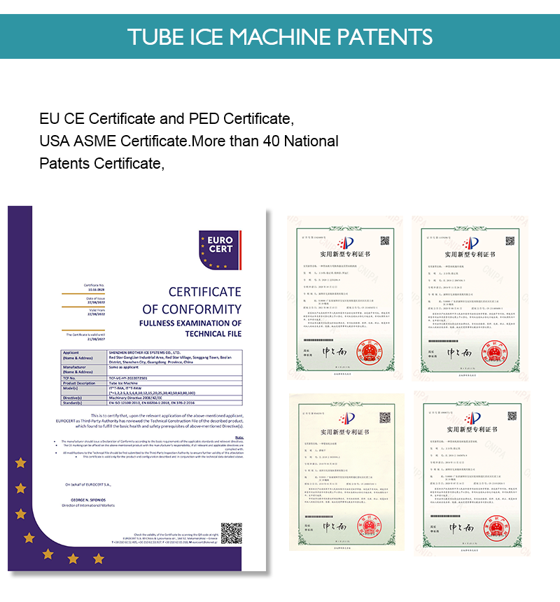 Ang tubo ng yelo ay nasa hugis ng kristal at walang pulbos na mga tubo. Kung ikukumpara sa flake ice, ang oras ng pagkatunaw ng tube ice ay mas mahaba, at ito ay mas angkop para sa paglamig sa isang unisulated na kapaligiran. Ang tubo ng yelo ay medyo solid at hindi gaanong madaling kapitan ng mga bukol ng yelo, kaya mas angkop ito para sa long distance delivery.